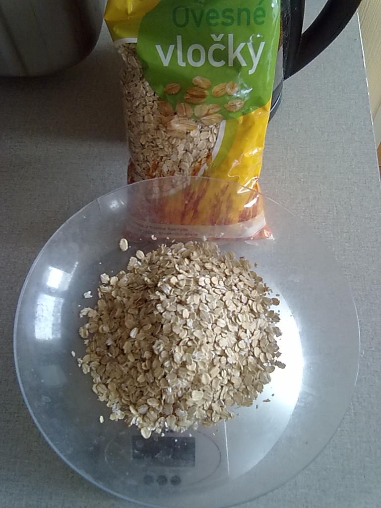 Na váhu si odsypeme asi 100g vloček, které vložíme do kastrolku a zalijeme dostatečným množstvím mléka nebo vody a dáme vařit.