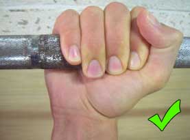 Základní úchop obouruční činky je středně široký úchop. Tj. úchop, kdy předloktí je kolmé vůči ose ve chvíli, kdy se osa dotkne prsních svalů. Tímto úchopem zajistíte to, že většinu práce budou vykonávat prsní svaly a ne tricepsy či přední delty. Osu vždy držíme nadhmatem (palce kolem osy).