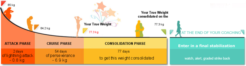 Neměli byste hubnout více než asi 0,5 až 1kg tělesné hmotnosti za týden (to se považuje za zdravé hubnutí). Po výrazných ztrátách tělesné hmotnosti během první fáze, se může zdát nynější tempo hubnutí pomalé, ale z dlouhodobého hlediska je tato rychlost mnohem vhodnější.
