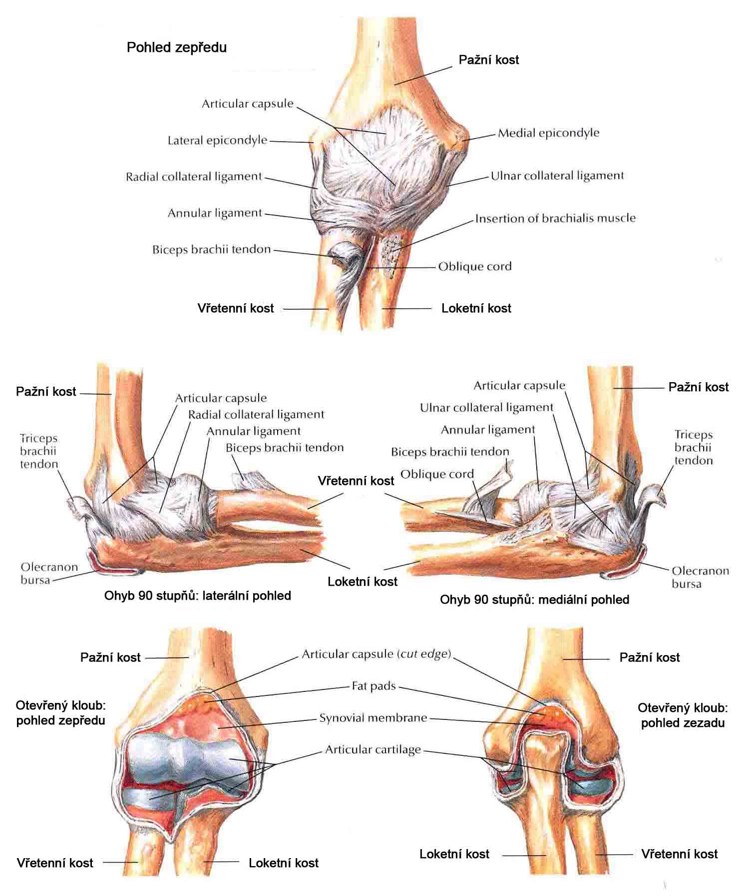 Kloub loketní je kloubem složeným, neboť se tu stýká kost pažní (humerus) s kostí loketní (ulna) a vřetenní (radius). Lze ho tedy rozdělit na tři samostatná spojení.