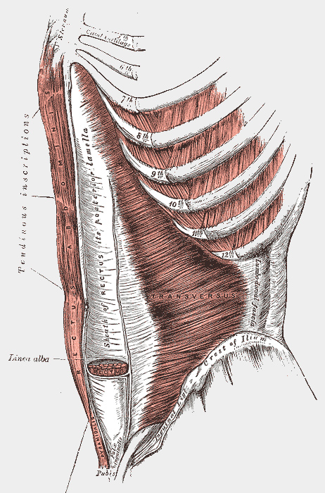 Příčný sval břišní se posiluje zvláštním cvikem zvaným „břišní vakuum“ (http://www.fitkul.cz/clanky/648-Brisni-vakuum).