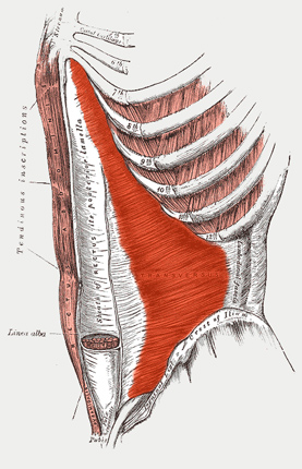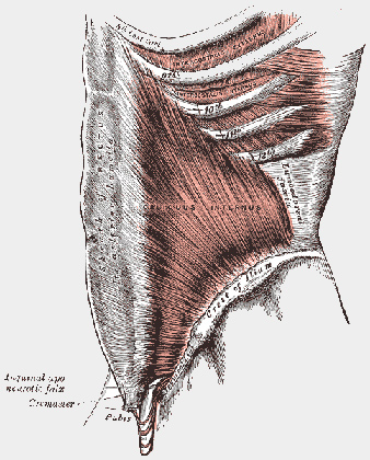 Zevní šikmý sval břišní (musculus obliquus externus abdominis)