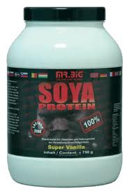 Sójový protein obsahuje pouze rostlinné produkty a proto je obzvláště vhodný pro vegetariány. Ale díky kvalitnímu aminokyselinovému spektru s větším množstvím glutaminu, BCAA a jiných tělu prospěšných látek si najde své místo i u „masožravců“ (hlavně díky velmi nízké ceně). Sója také správně ovlivňuje hladinu cholesterolu a také dokáže ovlivňovat rychlost produkce hormonů ve štítné žláze a tím urychlovat metabolismus (zvýšené spalování tuku). Konzumace je vhodná po celý den, tak jako i před a po tréninku. Jako většina proteinů není vhodný před spánkem.